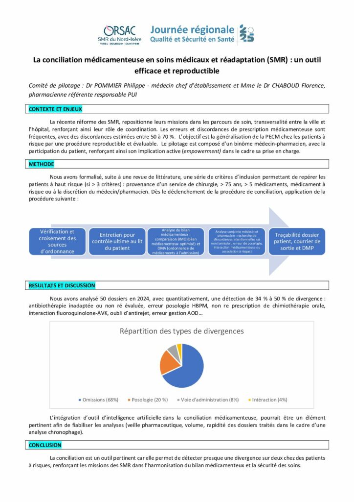 « La conciliation médicamenteuse en soins médicaux et réadaptation (SMR) : un outil efficace et reproductible »